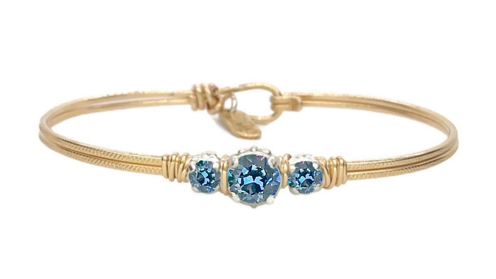 Wear your birthstone color on your sleeve! Sleek 14K Gold Filled wire wrap around our three Sterling settings designed and made in our studio. Our bracelets love to be stacked together and this is the perfect starter! Made in USA.