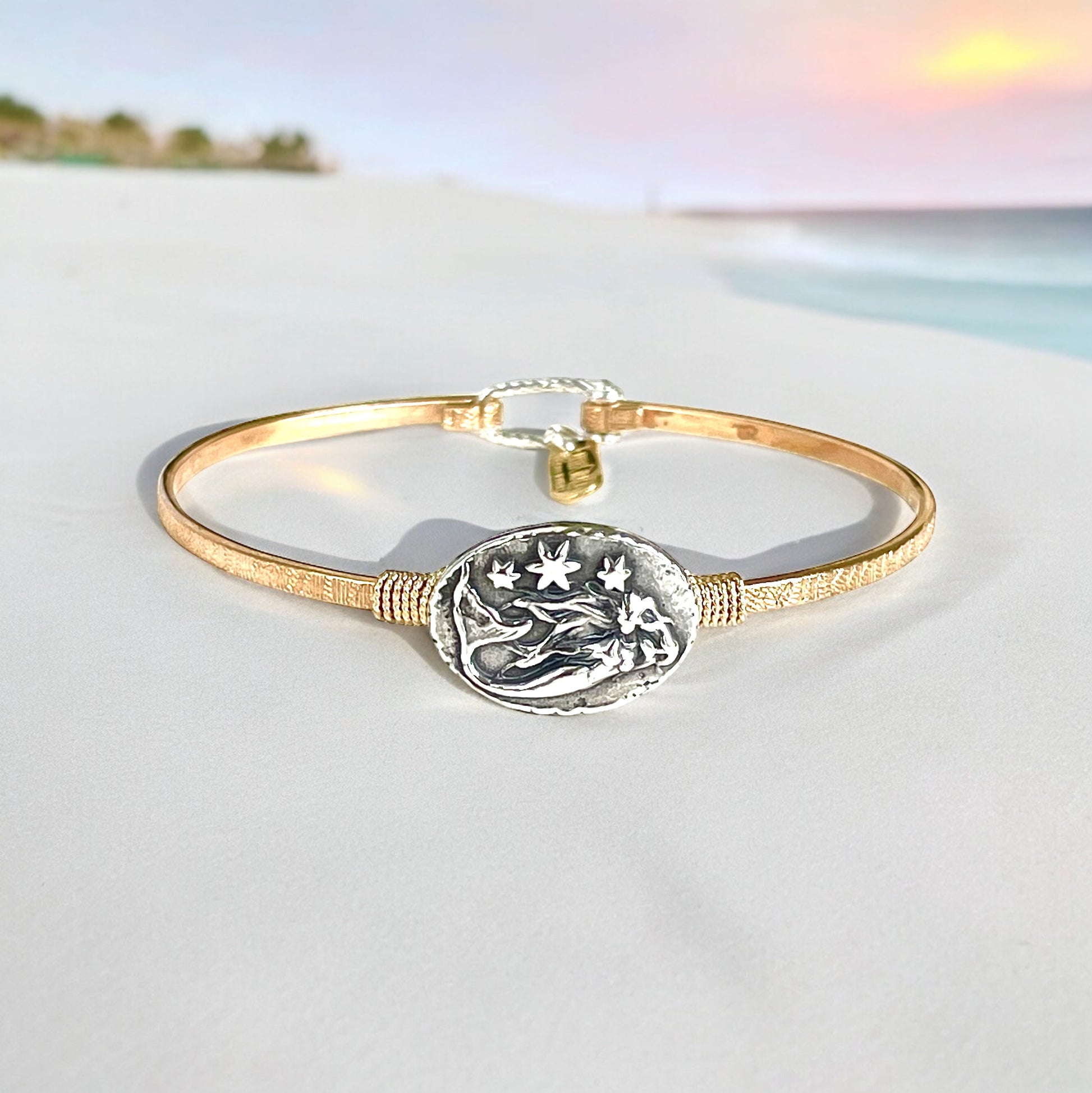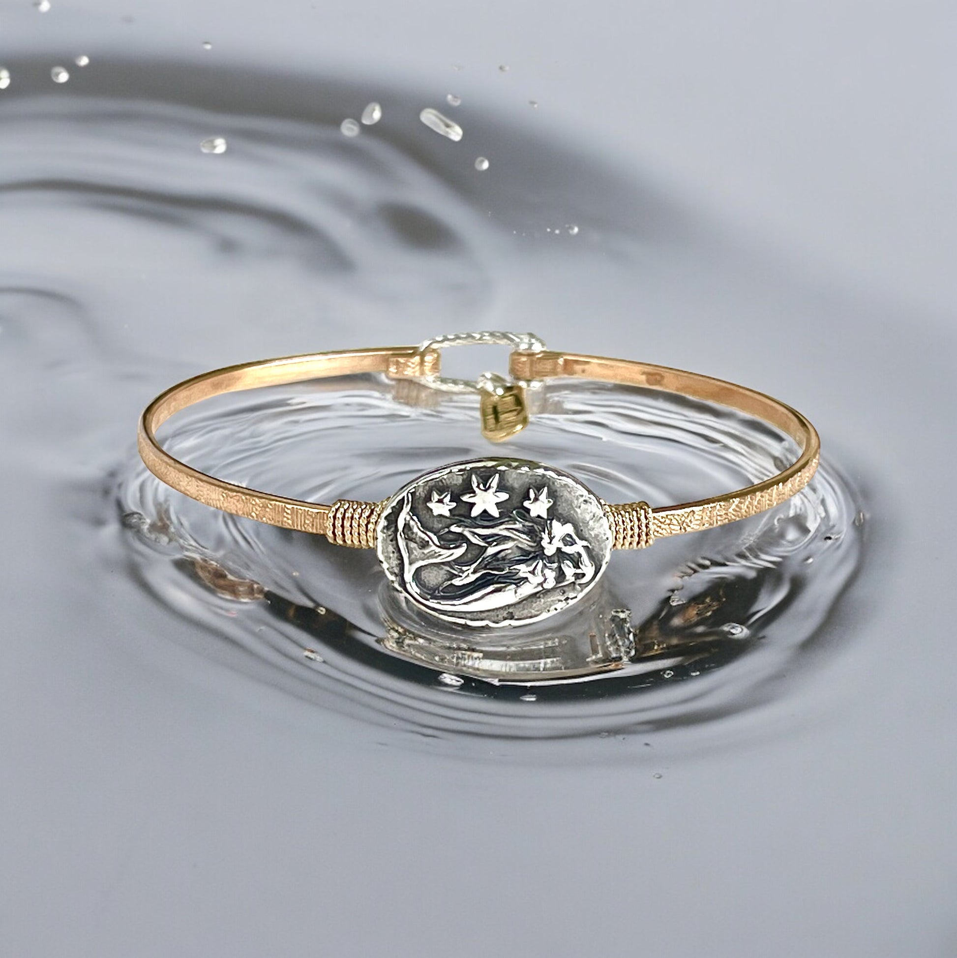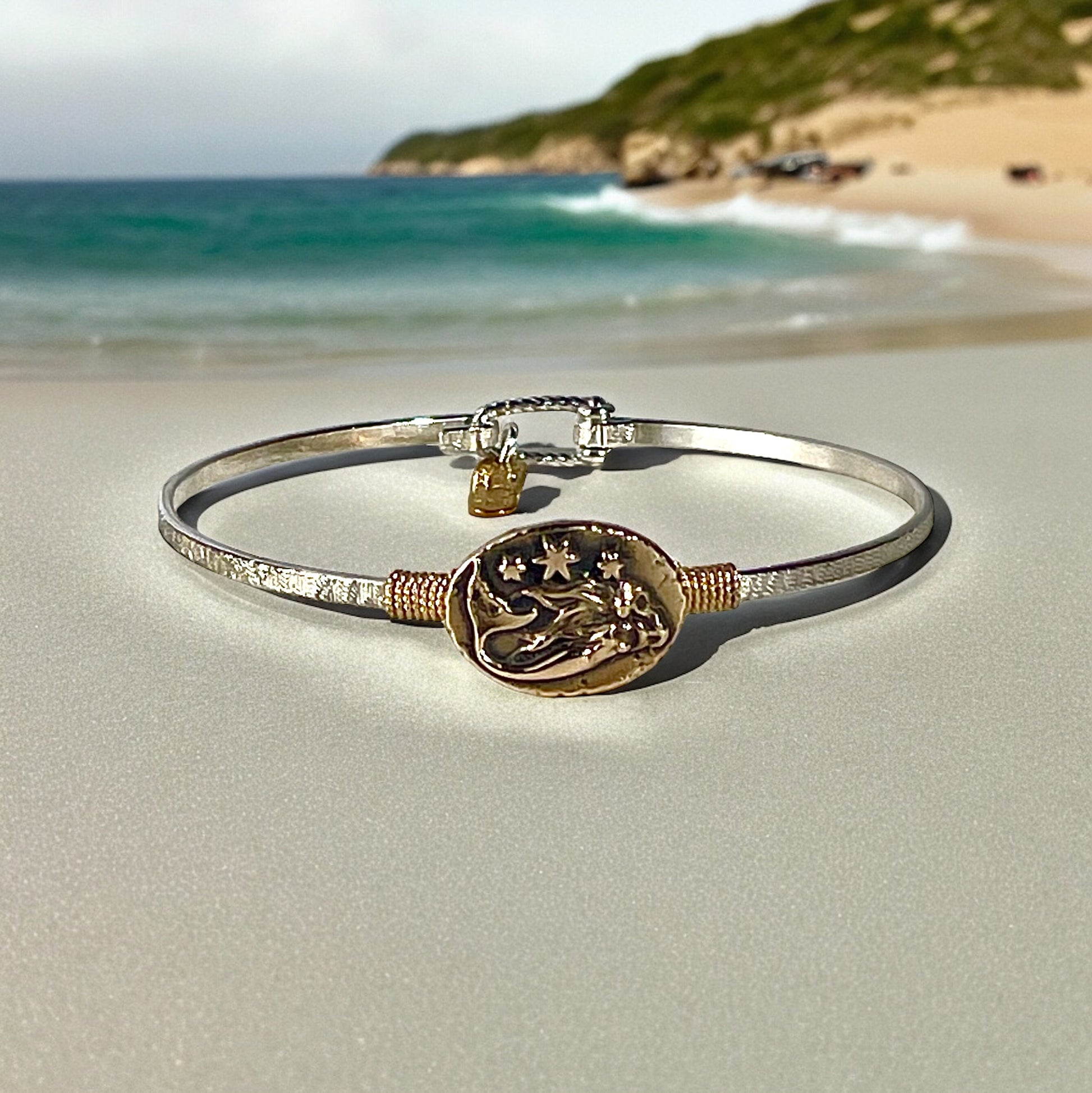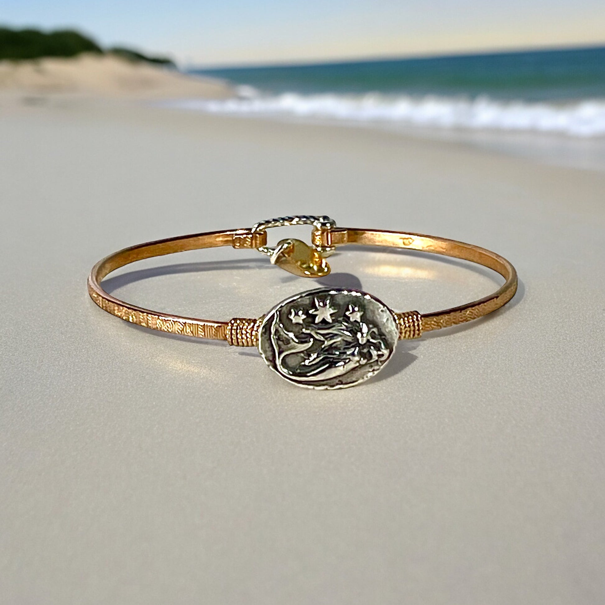 The “Dance with the Waves” mermaid Bracelet embodies the spirit of femininity and the ocean's allure. Crafted with meticulous artistry, this Bracelet captures the fluid grace of a mermaid gliding through sun-kissed waves. The delicate curves evoke strength and sensuality, symbolizing a woman’s resilience and connection to the sea. The pendant’s shimmering surface mirrors the sun’s dance on water, while its tail hints at hidden depths and mysteries. “Dance with the Waves” invites every wearer to embrace her inner mermaid—to navigate life’s currents with courage, beauty, and a touch of magic.