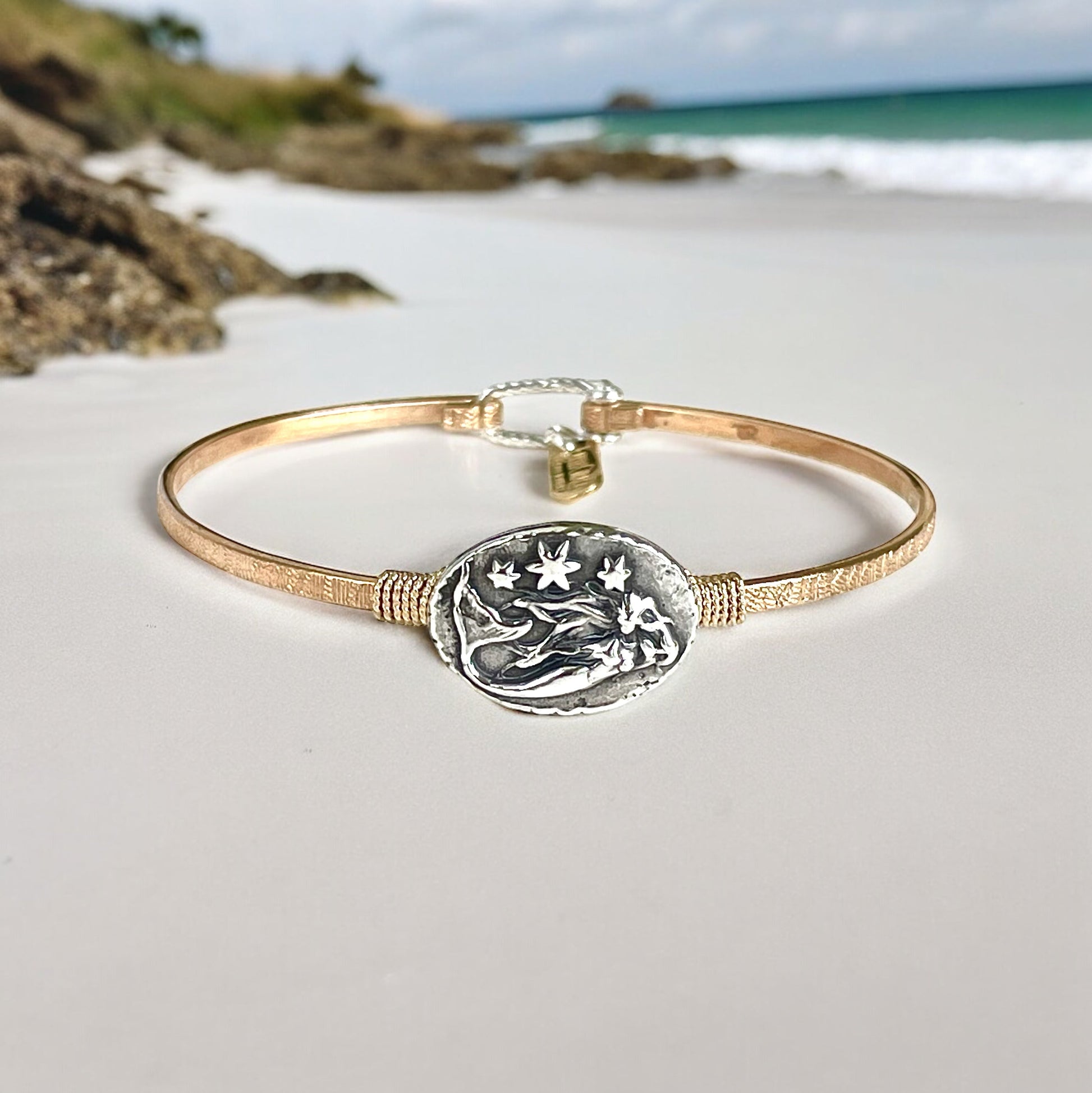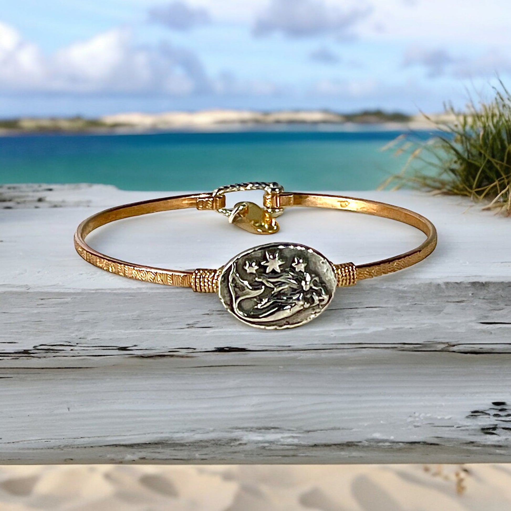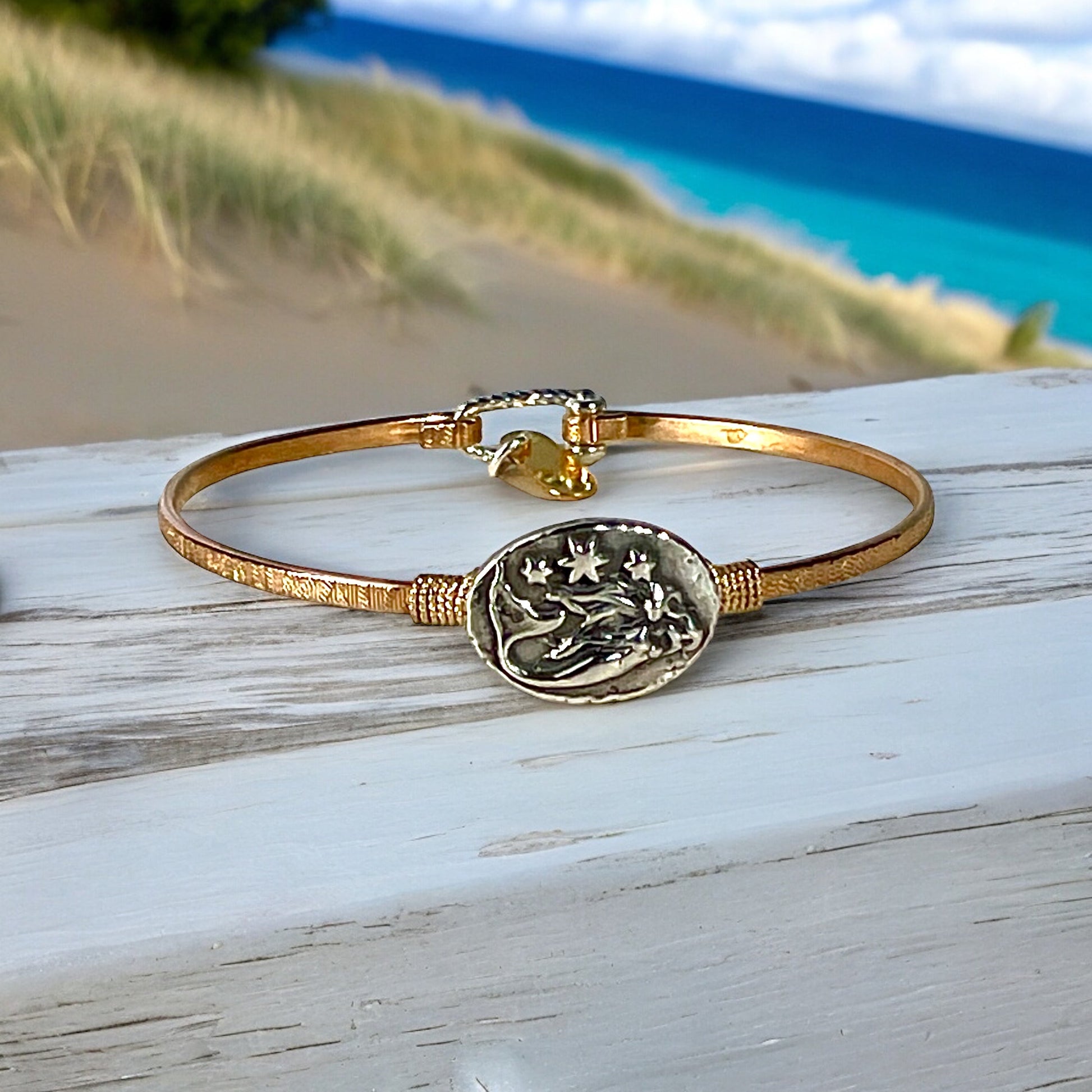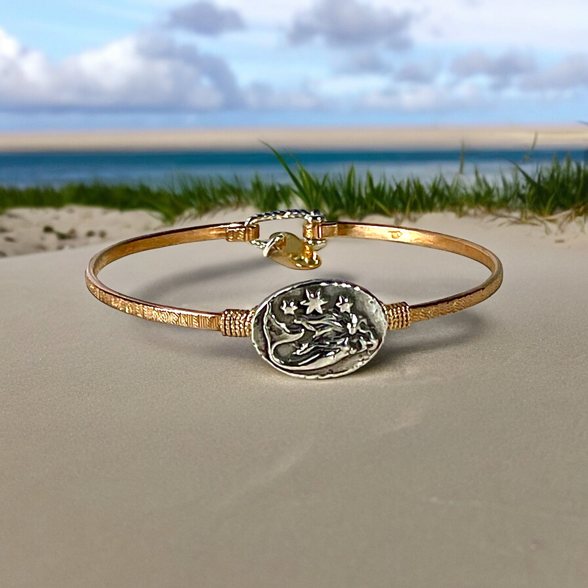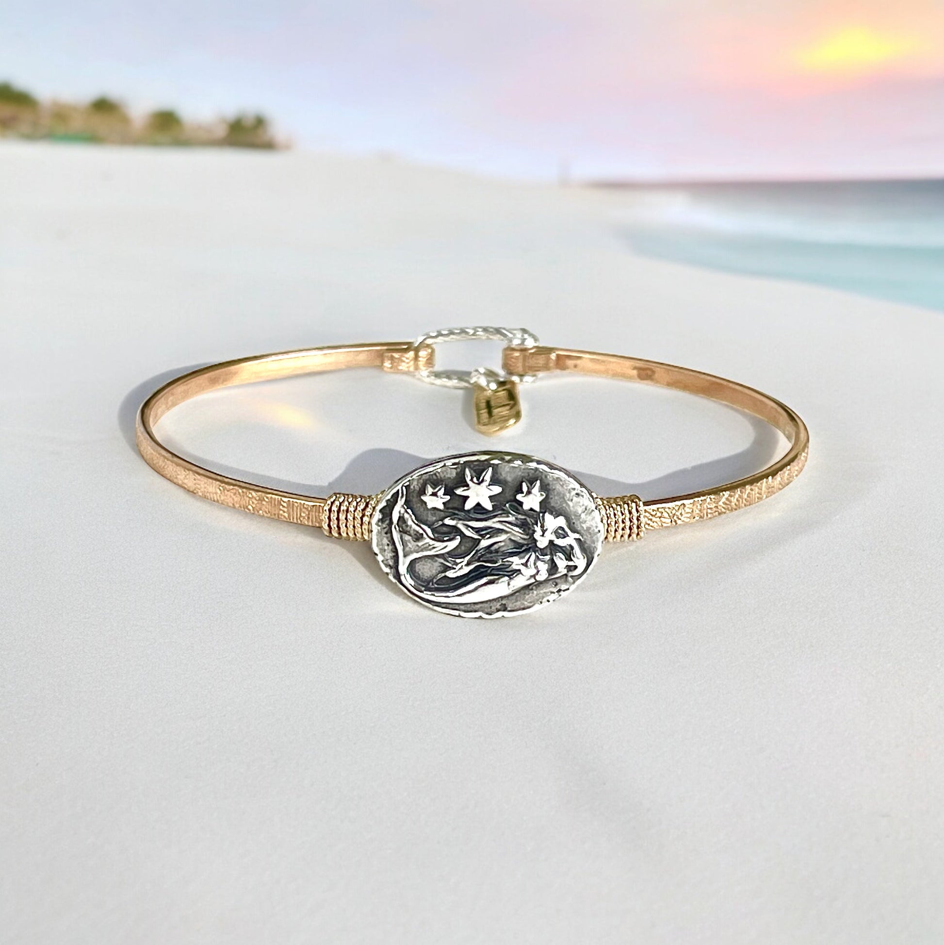 The “Dance with the Waves” mermaid Bracelet embodies the spirit of femininity and the ocean's allure. Crafted with meticulous artistry, this Bracelet captures the fluid grace of a mermaid gliding through sun-kissed waves. The delicate curves evoke strength and sensuality, symbolizing a woman’s resilience and connection to the sea. The pendant’s shimmering surface mirrors the sun’s dance on water, while its tail hints at hidden depths and mysteries. “Dance with the Waves” invites every wearer to embrace her inner mermaid—to navigate life’s currents with courage, beauty, and a touch of magic.