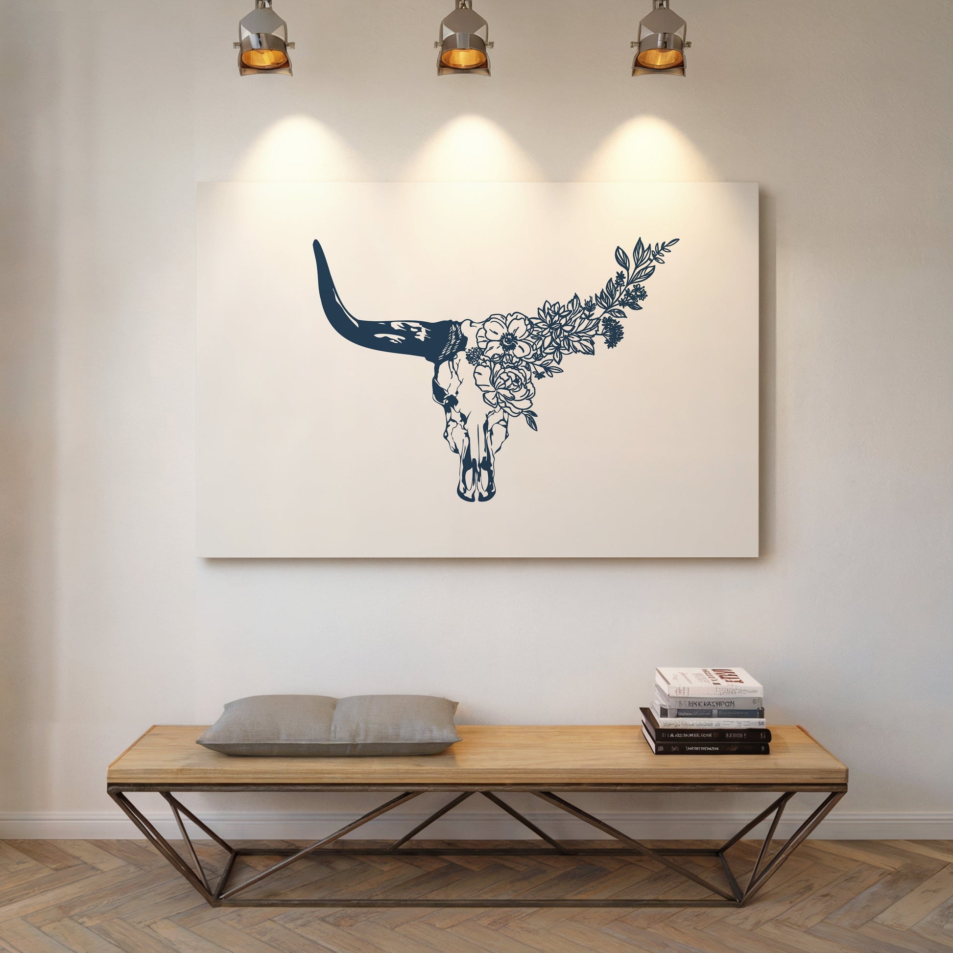 Floral Longhorn Skull Wall Art – Western Boho Cow Skull Print