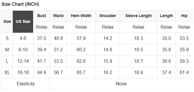 See size chart for approximate measurements.