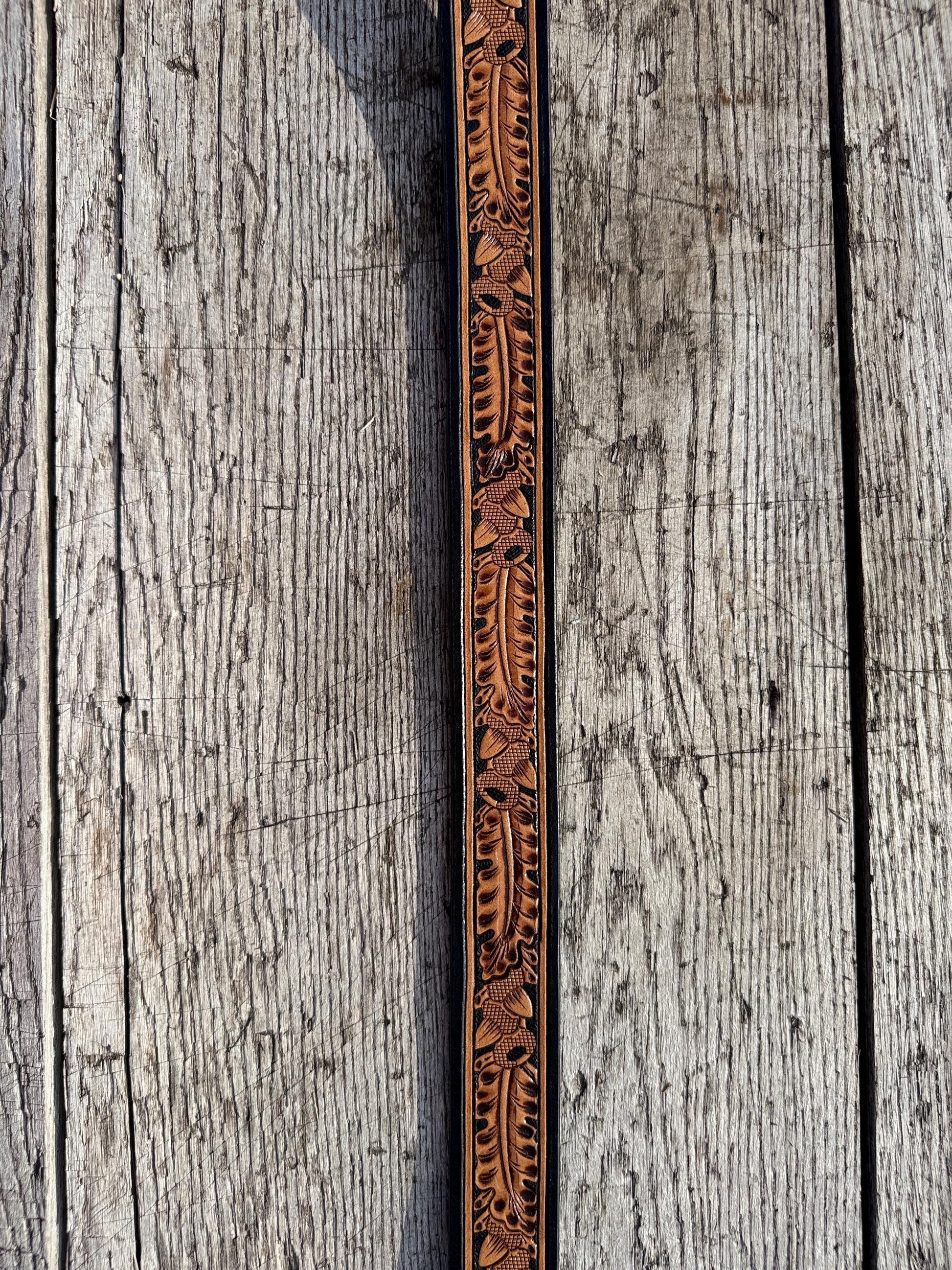 Genuine Leather Western Belt with tooled leaf acorn details by Double B Wild Rags
