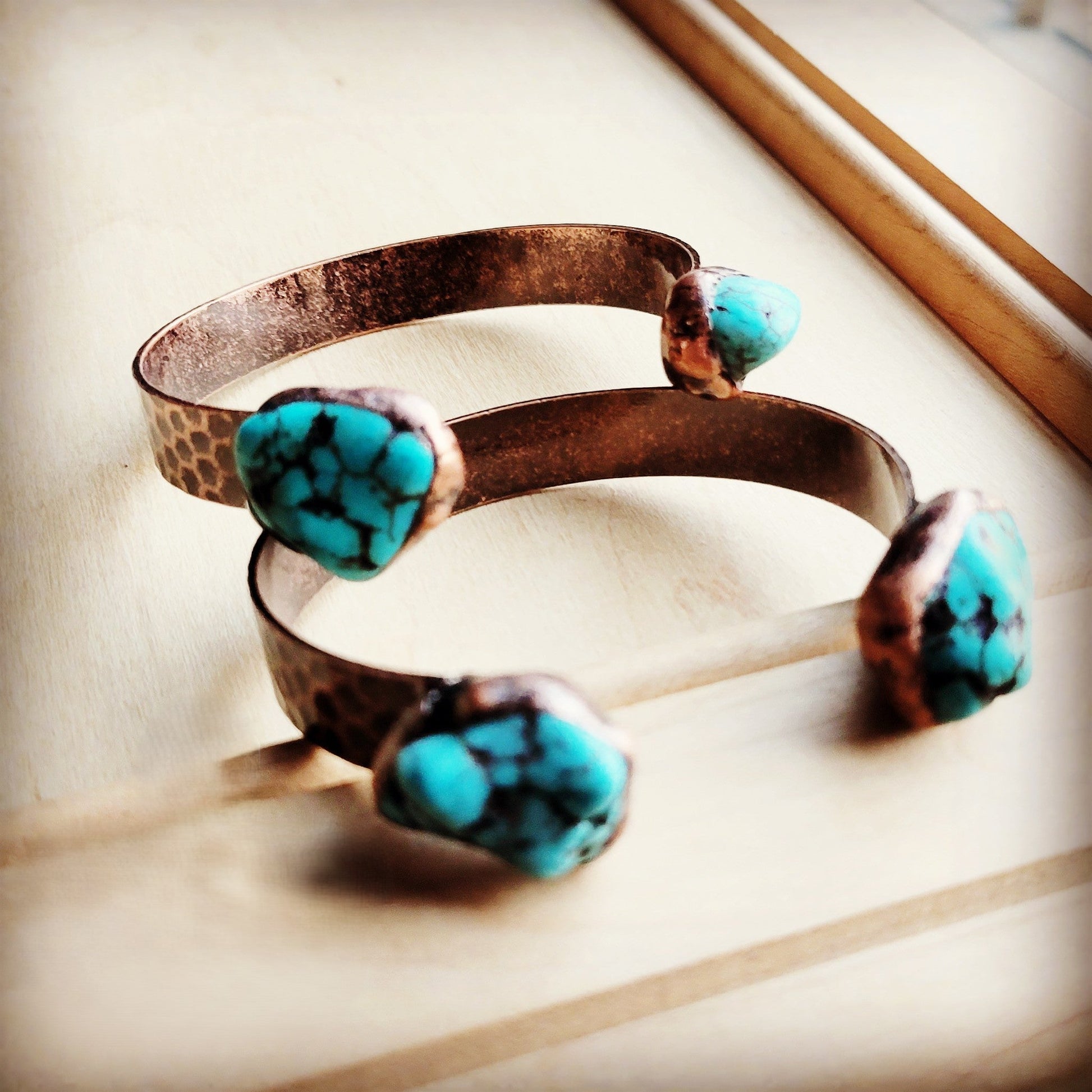 Expertly crafted in genuine natural turquoise, this cuff bracelet features a boho western style that is perfect for stacking. With its unique design and high-quality materials, this bracelet adds a touch of effortless style to any outfit. Elevate your look with this must-have accessory.