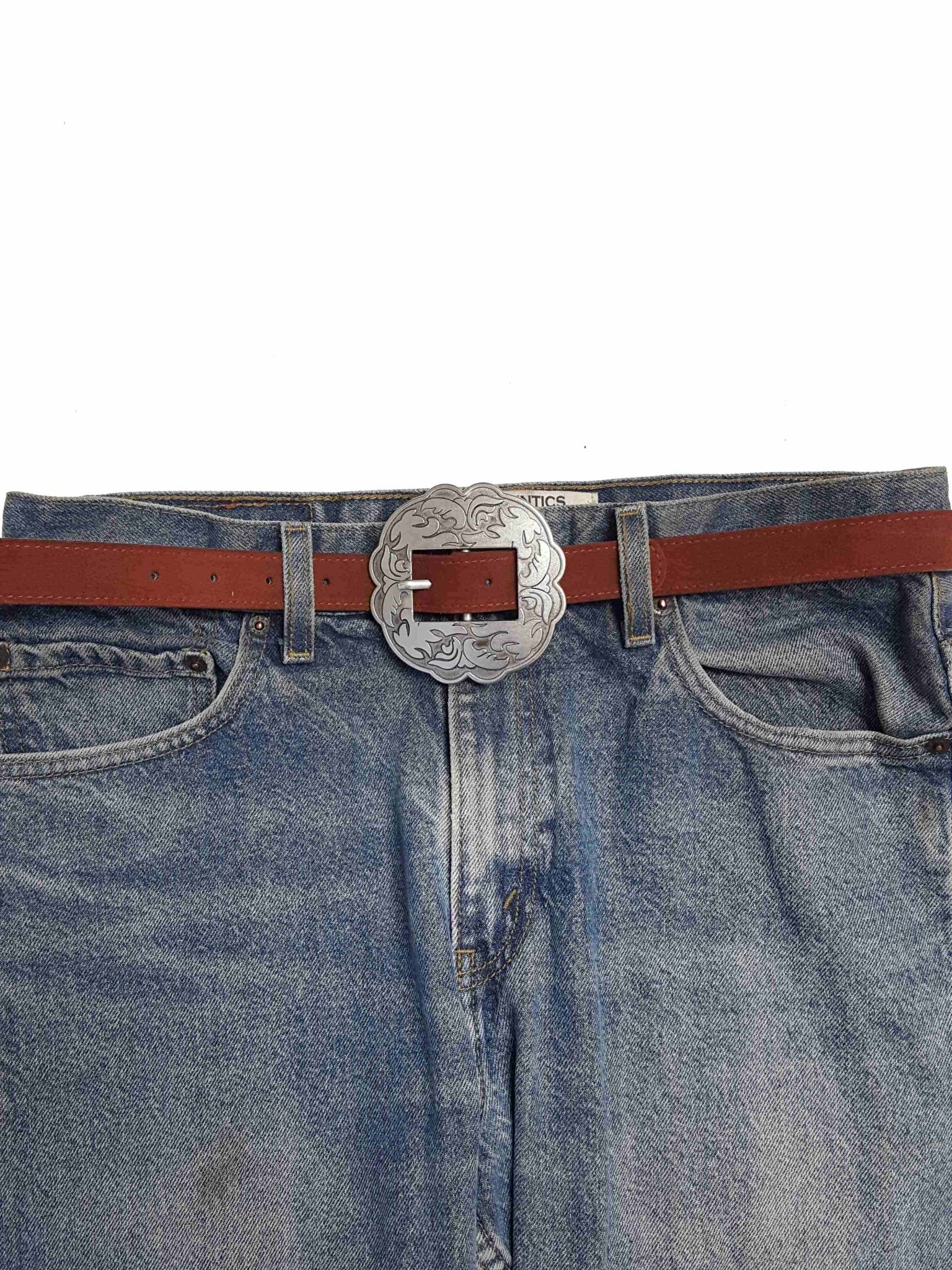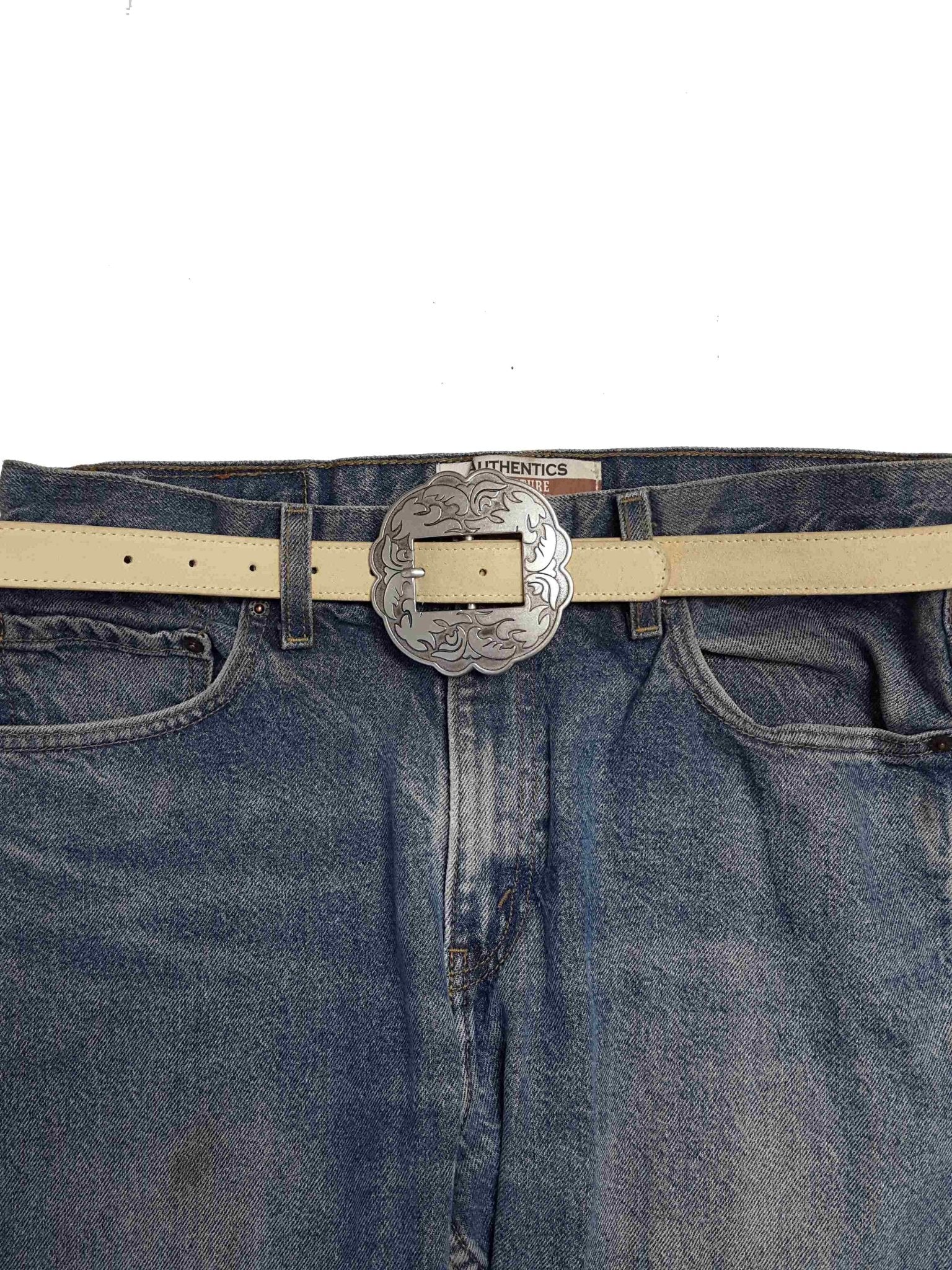 Genuine Suede Leather Belt w. Western Floral Buckle