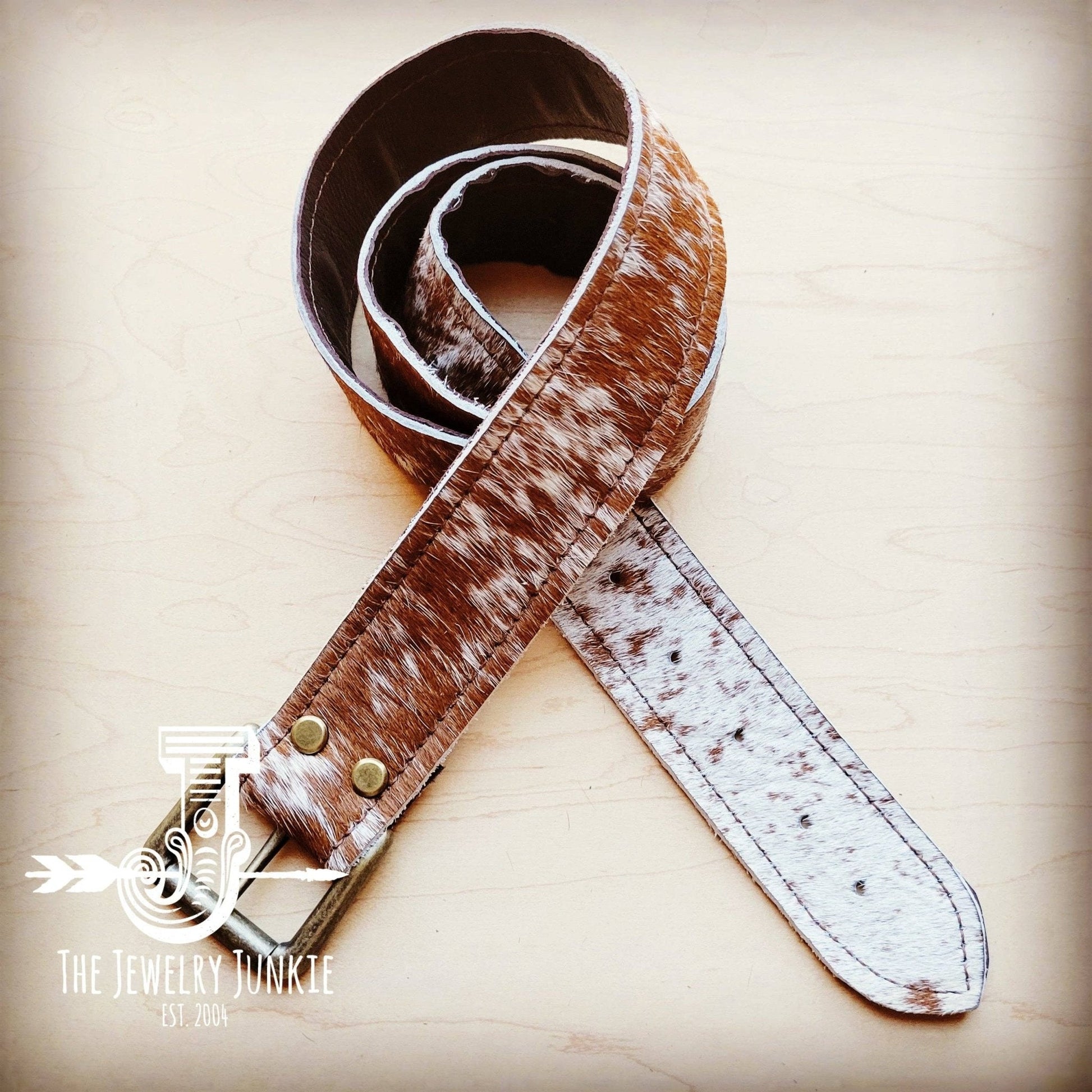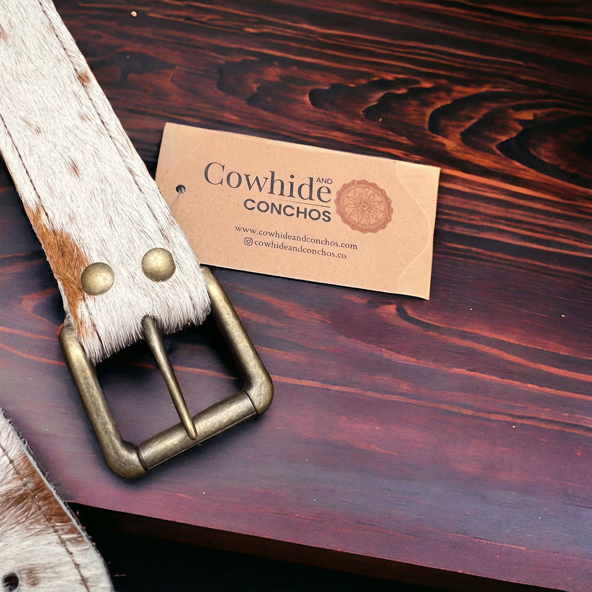 Hair on Hide Tan Brindle Leather Belt with Antique Belt Buckle
