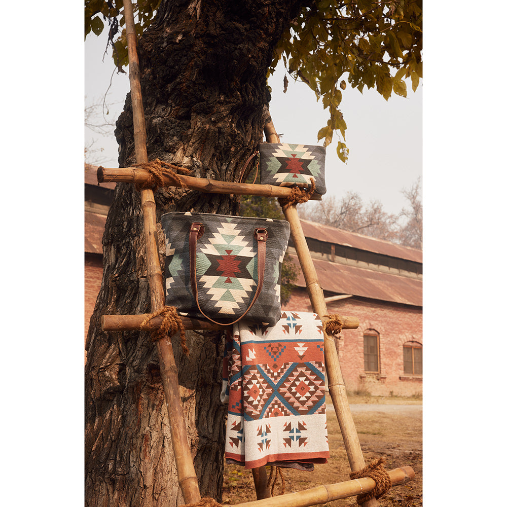 Myra Polos Aztec Canvas Tote for Women – Tribal Print Body with Dual Leather Handles for Everyday Western Style
