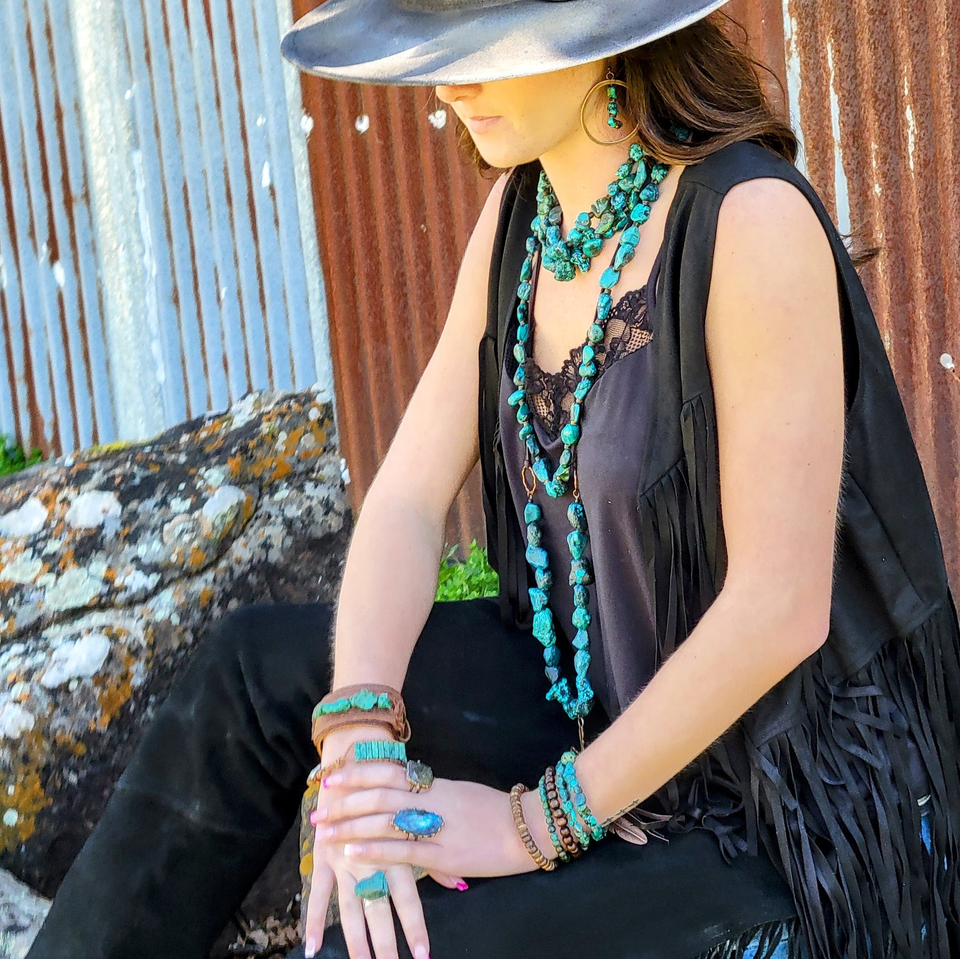 This stunning Natural Turquoise Chunk Statement Cuff Ring is made with a natural stone that exudes boho and western vibes. The perfect accessory to add a touch of earthy elegance to any outfit. Each piece is unique with its own natural variations and benefits.