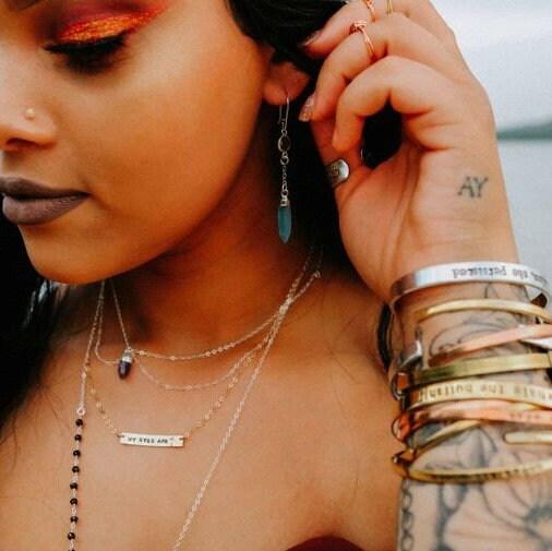 - It is not recommended to sleep, shower or exercise in stamped or handmade jewelry.