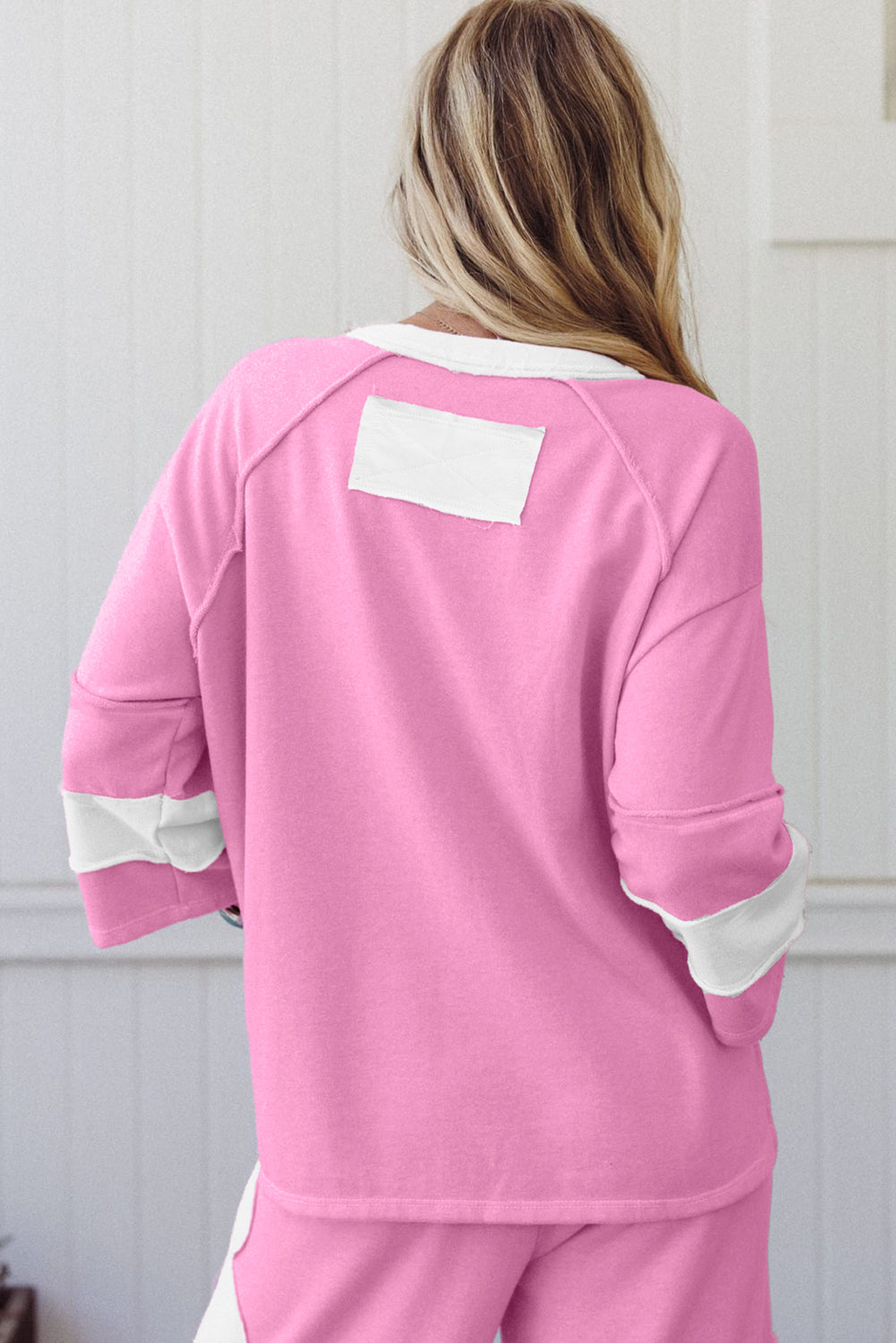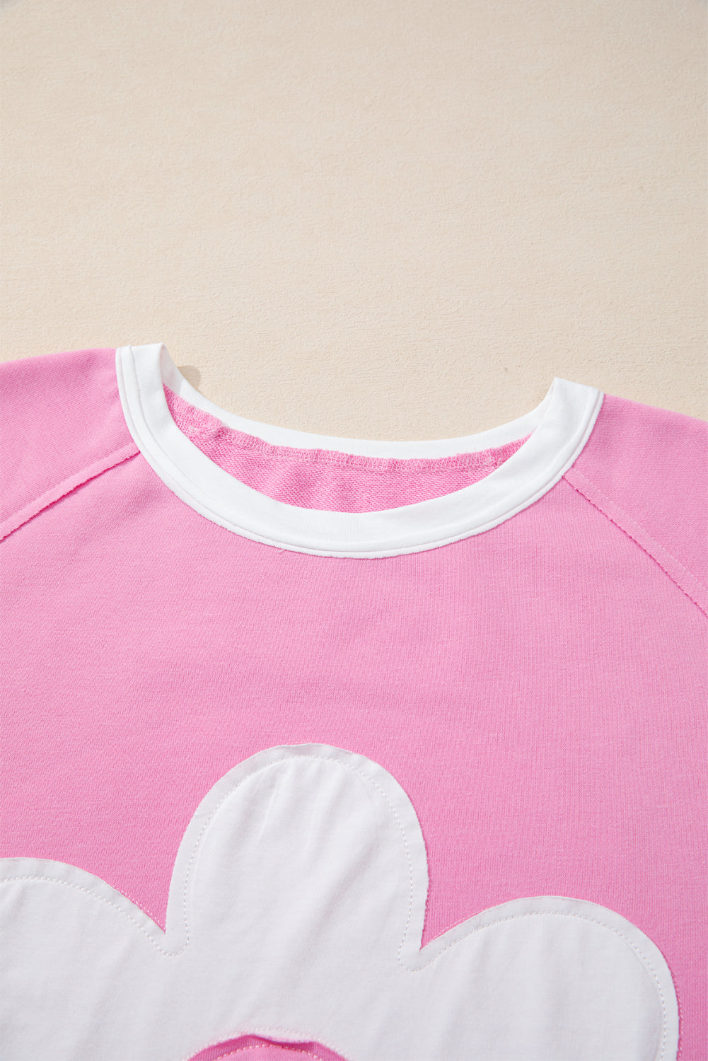 Orchid Bouquet Flower Patched Raw Seam Colorblock Loose Pants Set