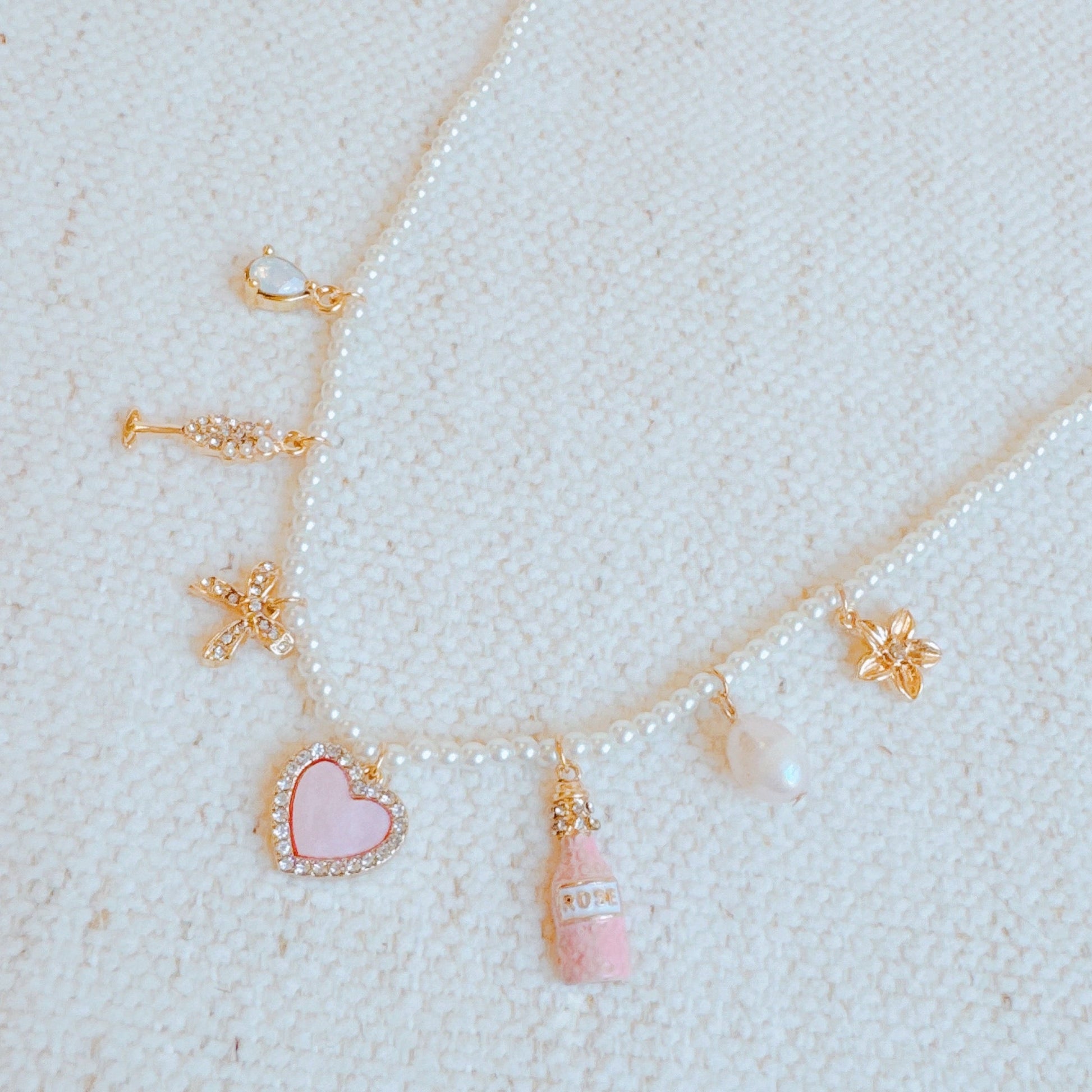 This Pink Wink Celebration Multi Charm Necklace features lovely pink designed charms and fun celebration charms, making it a vibrant and joyful addition to any outfit. A must-have for those who love to add a touch of fun and color to their fashion.
