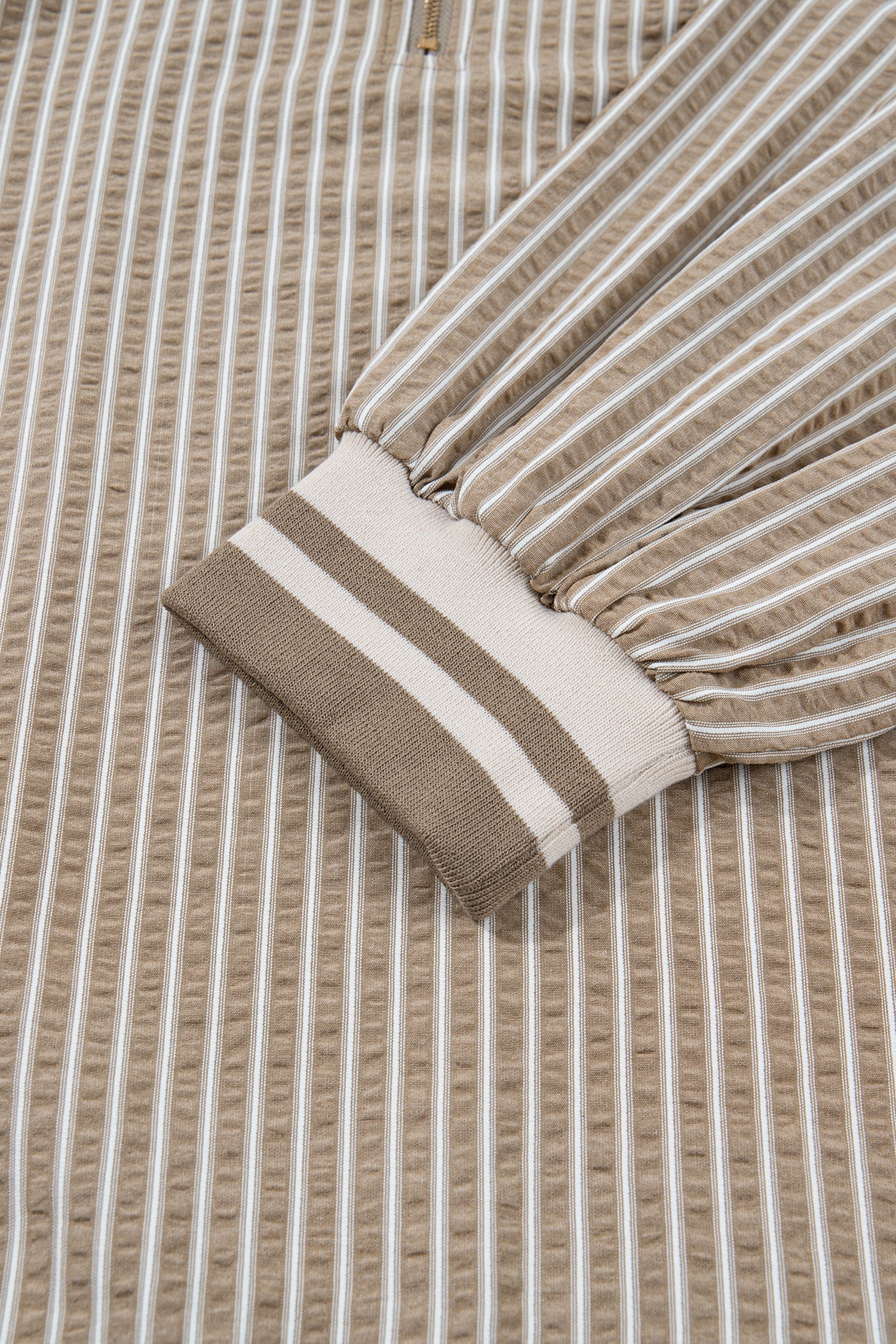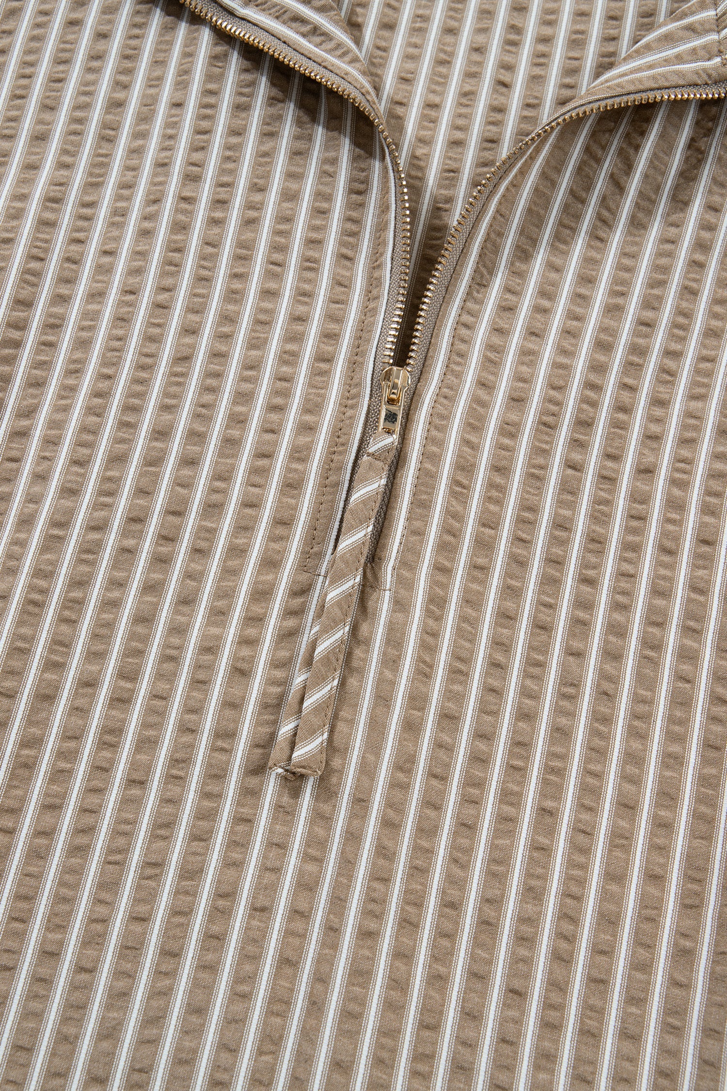 Plus Size Stripe Zip-Up Collared Mini Dress