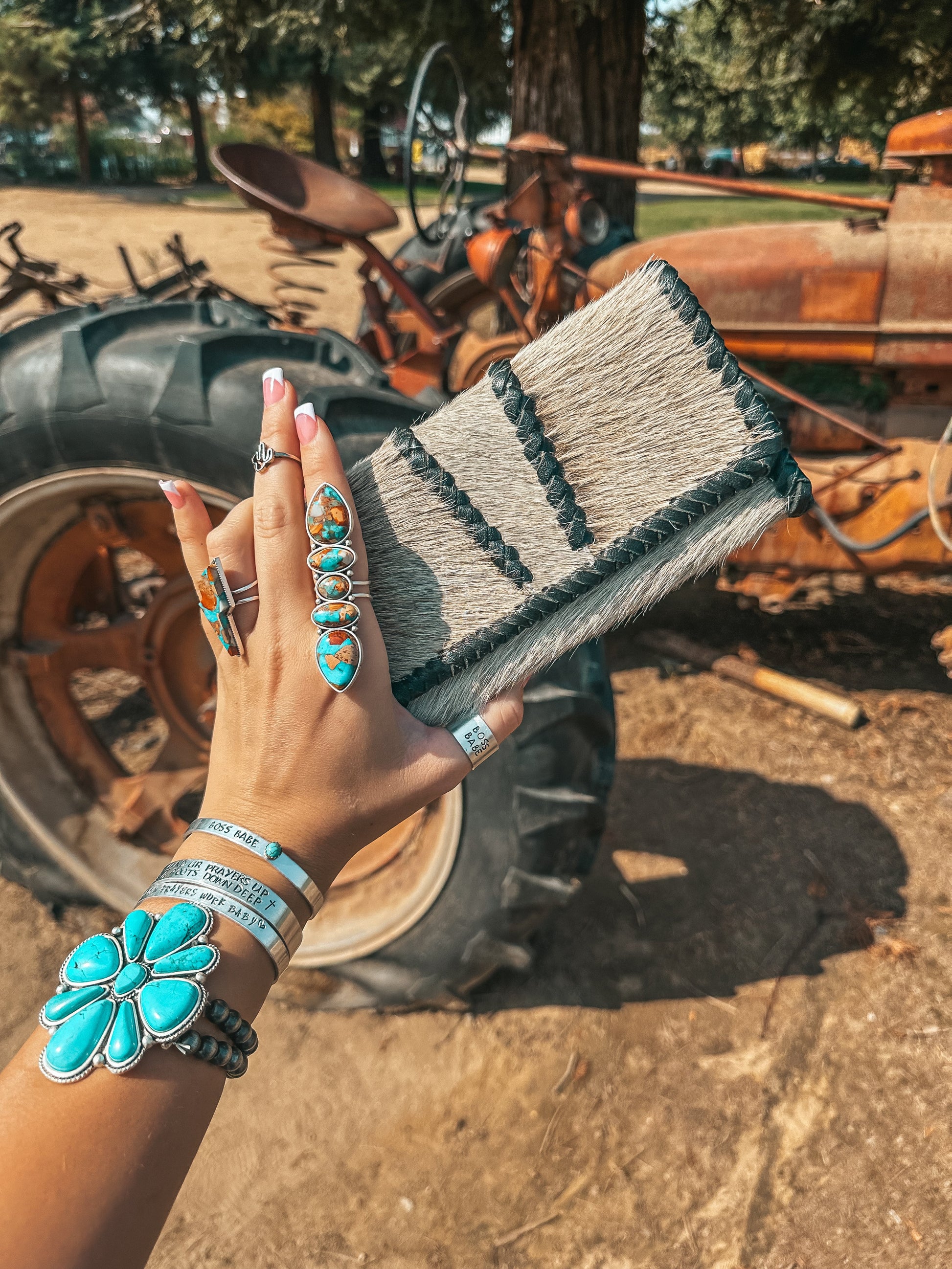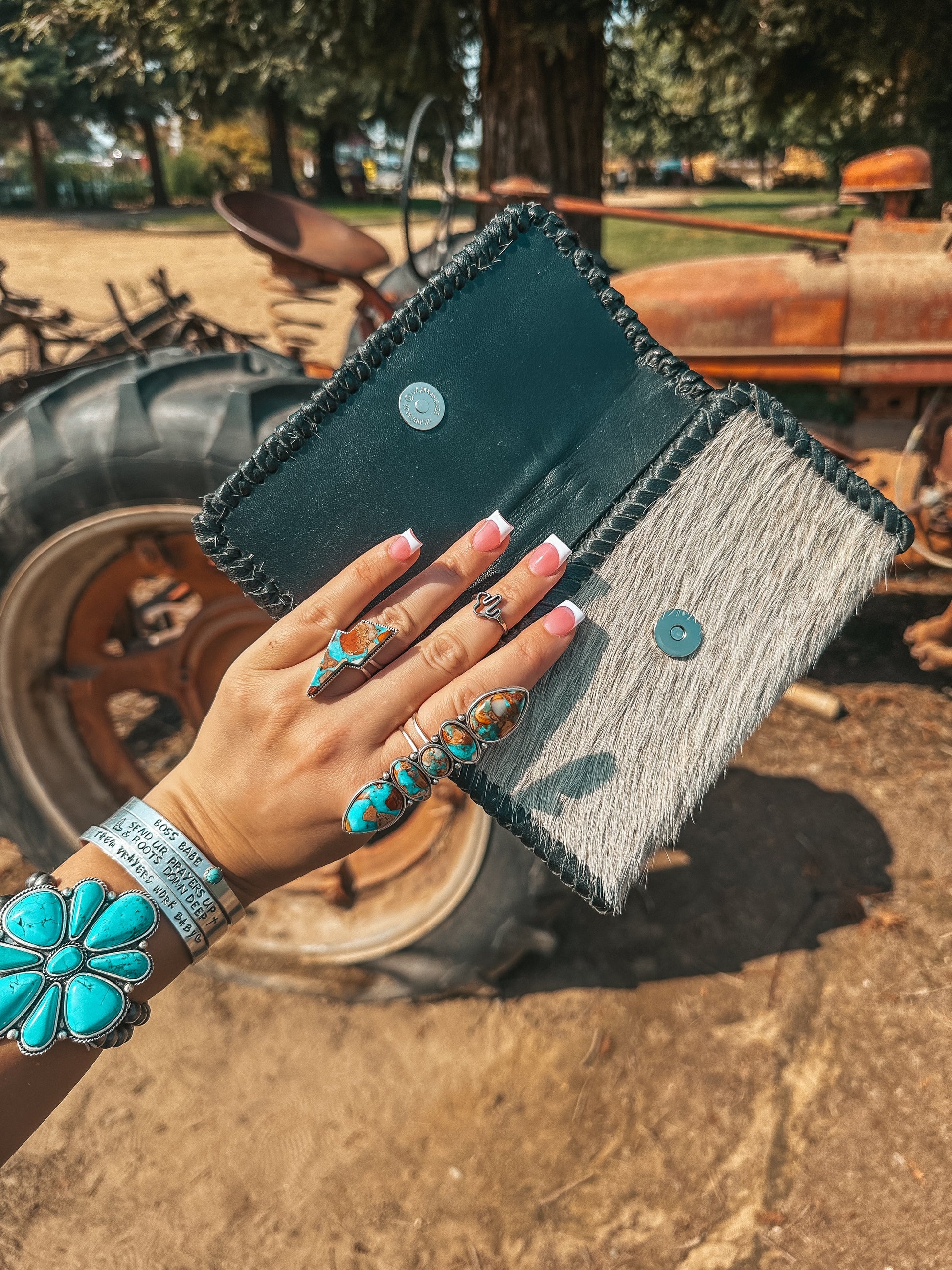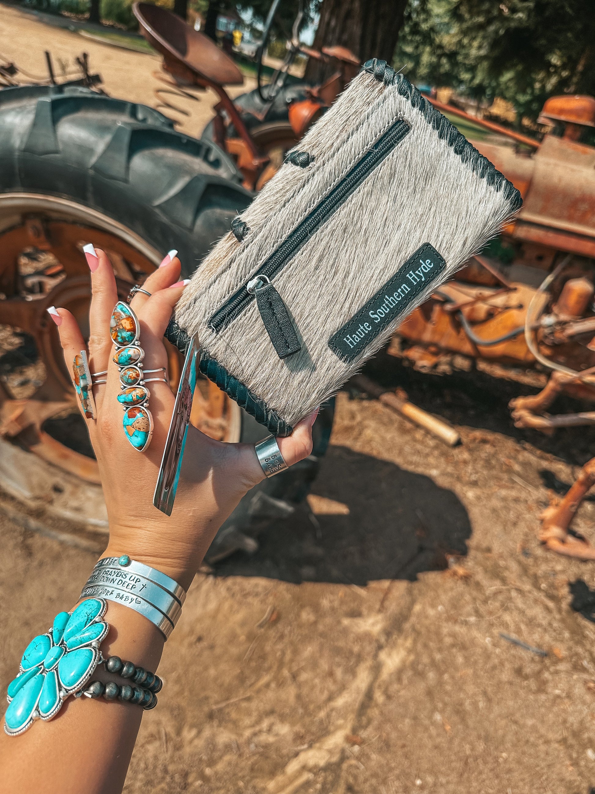 Sometimes a Hyde is just the vibe, and hand woven leather exemplifies the simplistic nature of this design. Introducing the Black Hazy Full Ryder, a Haute Southern Hyde by Beth Marie Exclusive. Designed by the owner Beth Marie, this wallet was made for the everyday western fashion gal. She features a snap closure, a zipper for your loose change, and 6 slots for your cards. 1 of those being clear to hold your I.D. Card.